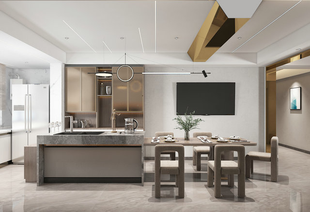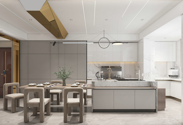 本案為好多年前的房子,業(yè)主也是新買的二手房。原室內(nèi)裝修為簡(jiǎn)約風(fēng)格,頗為奢華。業(yè)主就喜歡年輕時(shí)尚的元素,喜歡金色,本案已是提煉出部分金色來點(diǎn)綴。原廚房于陽臺(tái)處,結(jié)構(gòu)極其不實(shí)用,灶具和水槽空間狹小,故而使用餐廚一體化,原陽臺(tái)廚房作為物料收納區(qū)域,活了整個(gè)空間感覺和實(shí)用性。因?yàn)槔戏孔?,個(gè)人不喜歡裝修完看到梁,又要做出大宅該有的氣勢(shì),故而做了這樣一個(gè)設(shè)計(jì)。所有裝飾皆為處理空間細(xì)節(jié)問題而生,無浮夸造型。本案為現(xiàn)代簡(jiǎn)約風(fēng)格,因樓層實(shí)在不高,故而用了分體空調(diào)。