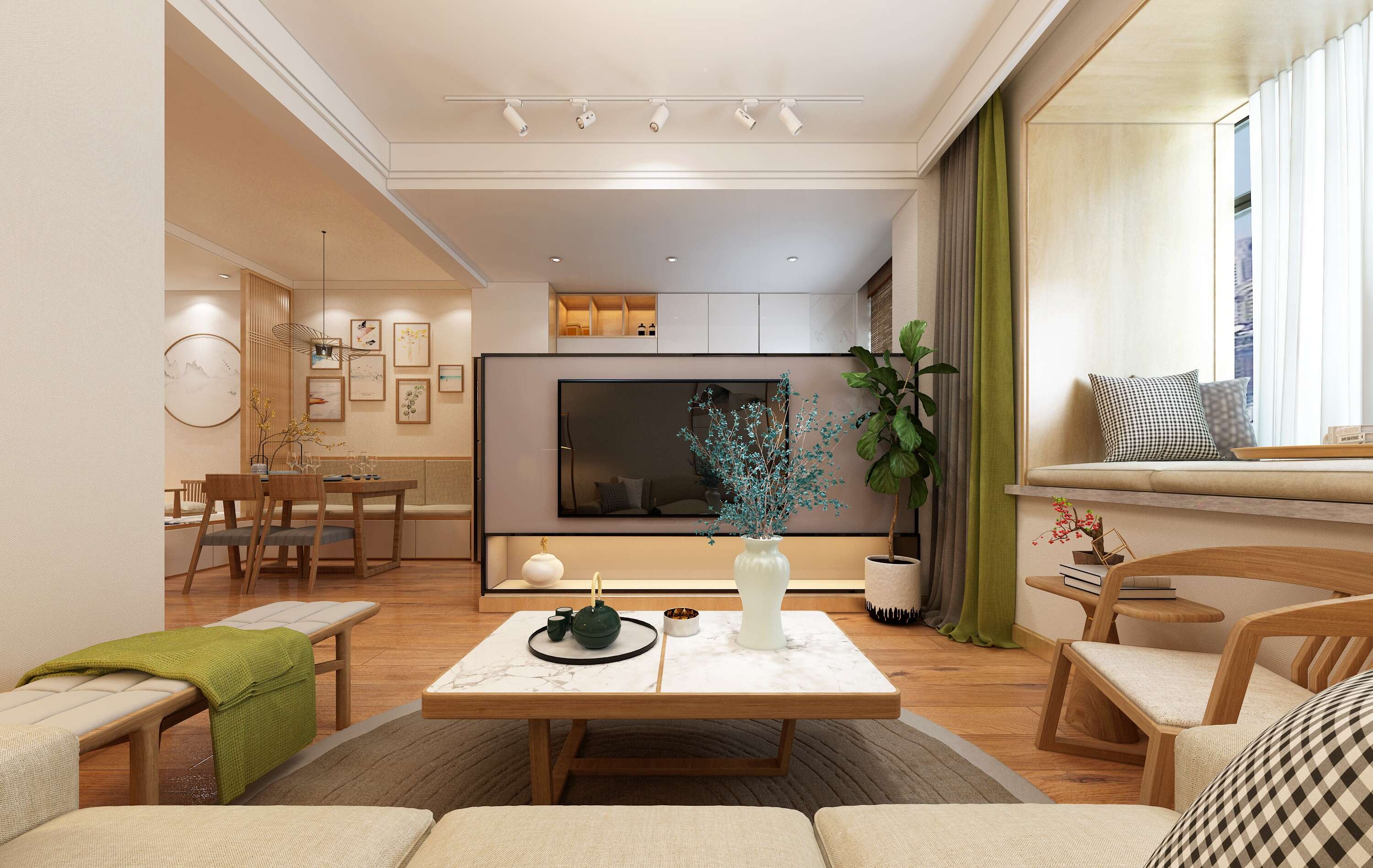 硬裝保留了極簡風(fēng)格,通體的淺暖色墻與鋪貼的木地板相互映襯,兩側(cè)的光線涌入,一日光影靜默游走,時(shí)間卻如同靜止一般。臥式區(qū)域暖色的木質(zhì)和地板,奶油色的墻面,灑進(jìn)陽光,整個(gè)空間的溫馨感拉滿。