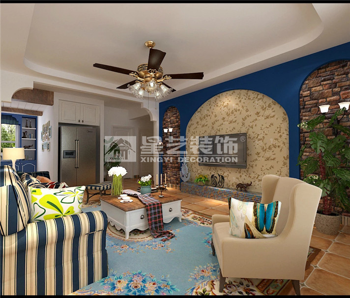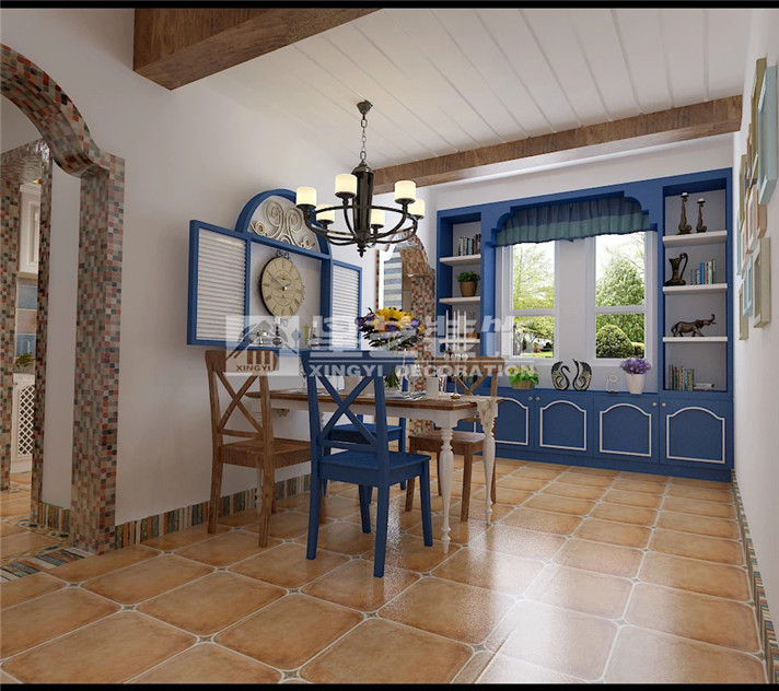 地中海的天空,海洋,沙灘,那種連天空中都漂浮著悠閑味道的藍(lán)色與白色無處不在,似乎薄紗一般輕柔,讓人感到自由安閑,心胸開闊,使用這類色彩裝飾的居室空間,似乎也變得像窗外的天空一樣寧靜,悠遠(yuǎn)。這也是主人所向往的悠閑空間。