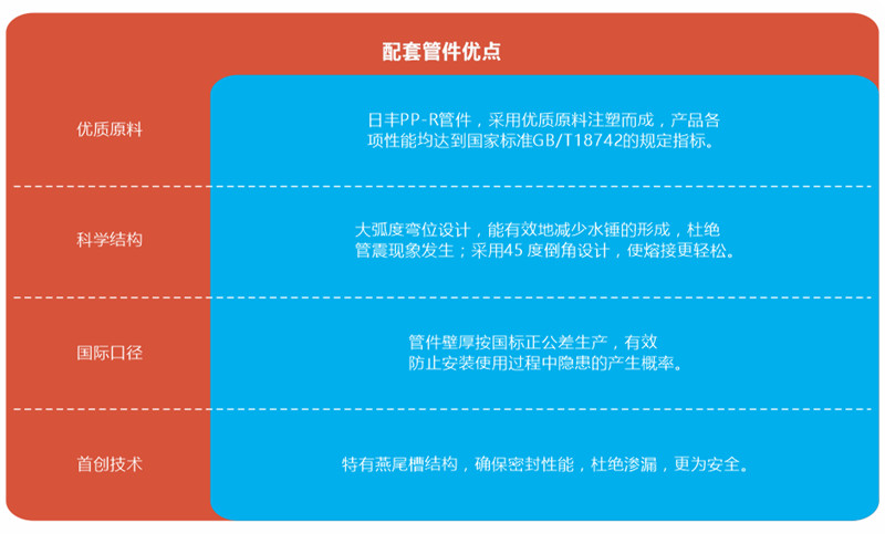 同質(zhì)熱熔管件連接,杜絕漏水隱患,是適合暗埋的家裝冷熱水給水管材。