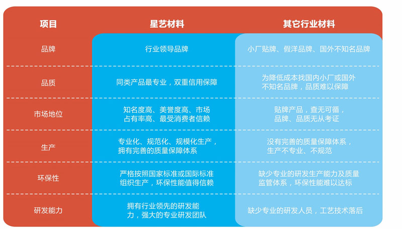 ■ 星藝與材料領(lǐng)域最為優(yōu)秀的企業(yè)建立長期穩(wěn)定的合作伙伴關(guān)系,確保星藝在同類產(chǎn)品中以最先進(jìn)的科技和最優(yōu)質(zhì)的產(chǎn)品奉獻(xiàn)給廣大的業(yè)主。