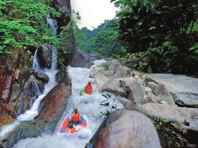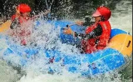 其實(shí)在上筏子的時(shí)候,身上的衣服就被濺起的水花打濕了,等一坐進(jìn)橡皮筏,想不濕身已是不可能了。有的地方坡道很急,年齡小一點(diǎn)的“星二代”甚至被嚇哭,但順流而下聽到更多的是一聲聲飽含著興奮和刺激的尖叫聲和歡笑聲。有的橡皮筏遇到阻礙稍有停頓,就被沖下來的另一組橡皮筏沖撞,又繼續(xù)前進(jìn)。有時(shí)候兩組人還互相打起了水仗,玩得不亦樂乎。